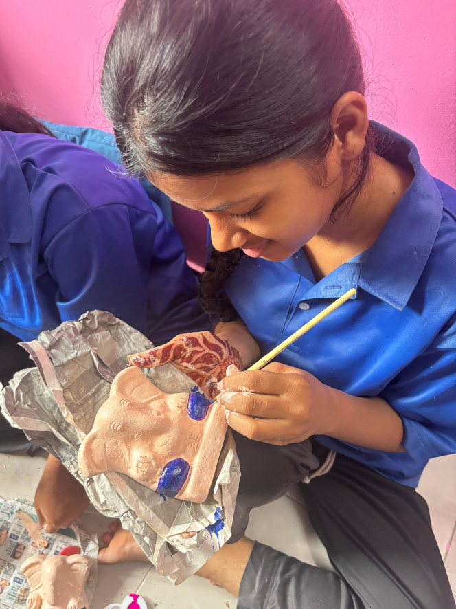 Zur Feier des Geburtstages eines Hindu-Gottes namens „Ganesha“ (ein Gott der Weisheit, des Glücks und des Erfolgs) werden traditionell Tonfiguren selber hergestellt. Auch hier zeigt sich wieder, wie talentiert die Kinder sind.
